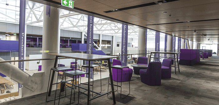 The new space includes significant facilities to support more effective teaching, learning and research collaborations, including workstations for individuals and groups, enhanced Wifi and electrical power points. The Engineering Core especially forms a major student hub offering a more attractive option for potential students, designed to conform to modern university design principles - open plan and multi-use, encouraging mixing and mingling to improve the quality and results of teaching and research.
