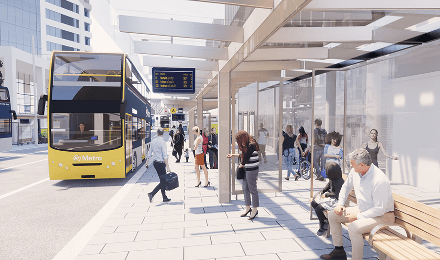 The Downtown Bus Interchange project works with the quieter Quay Street, which will still retain its function as a downtown transport hub integrating different modes of transport and improving navigation between trains, buses and ferries. New interchanges will be created, at Britomart East and Lower Albert Street. These two terminals will function as a destination or starting point, or transfer between buses, ferries and trains.