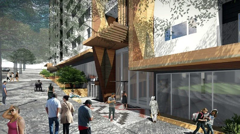 The existing building will be demolished and replaced with three new towers containing 275 studio, one- and two-bedroom apartments along with 2000m² of indoor communal space including a shared kitchen, dining hall, recreation space and on-site support services such as healthcare, counselling and skill development.